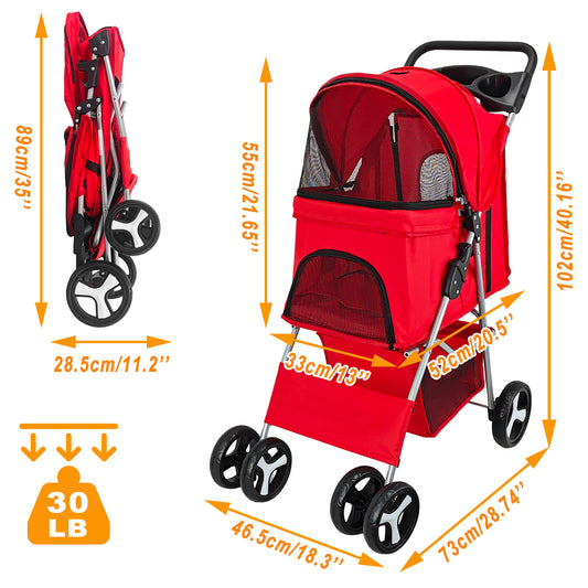 Stroller Dog Cat Pushchair Pram Jogger Buggy with 4 Wheels