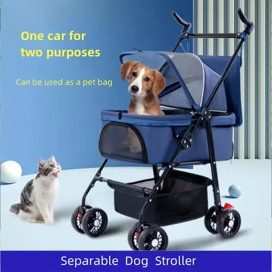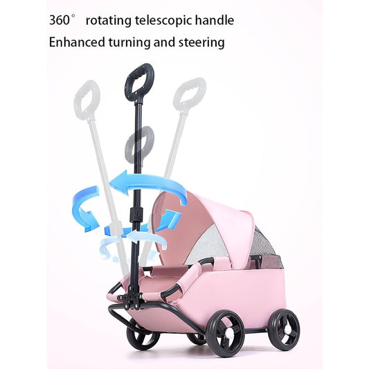 Stroller – Foldable Pet Carrier Cart with 360° Rotatable Handle, Extendable Pull Handle & Storage Bag Lightweight Travel Buggy for Small Dogs & Cats