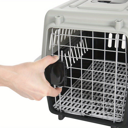 Puppy Rabbit Pet Carrier, Plastic Dog/Cat Crate Portable Travelling Pet Kennel for Dogs, 48*32*30cm, Grey
