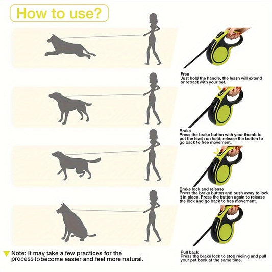 Dog Leash with 5M Extendable Strap Tangle-Free 360° Design, Adjustable Training Lead for Small to Large Dogs