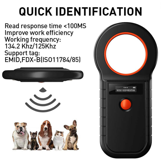 Reader for Dog Cat, 134.2kHz FDX-B EMID Chip Scanner, Quick Scan within 30cm, 128 Record Memory, USB Rechargeable Microchip Scanner for Pets