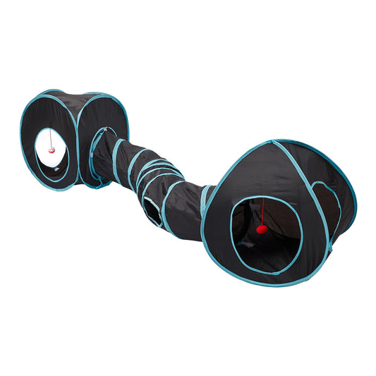 Foldable Cat Tunnel with Hanging Balls Cat Furniture Cat Tent for Indoor Cats Dogs Pets Black and Blue 196cm