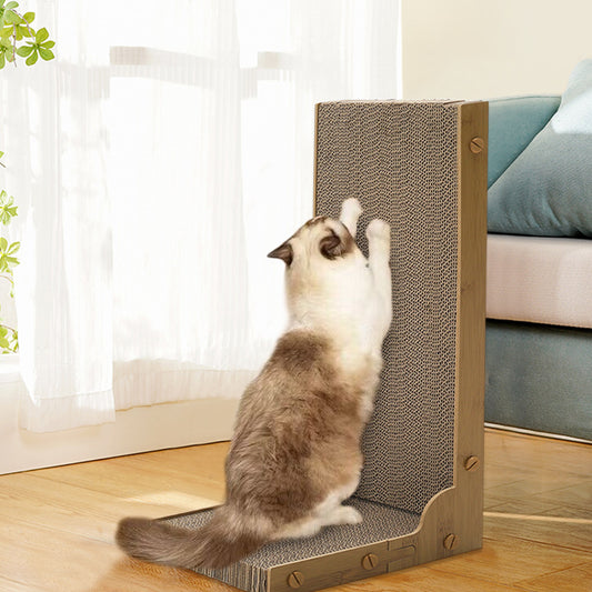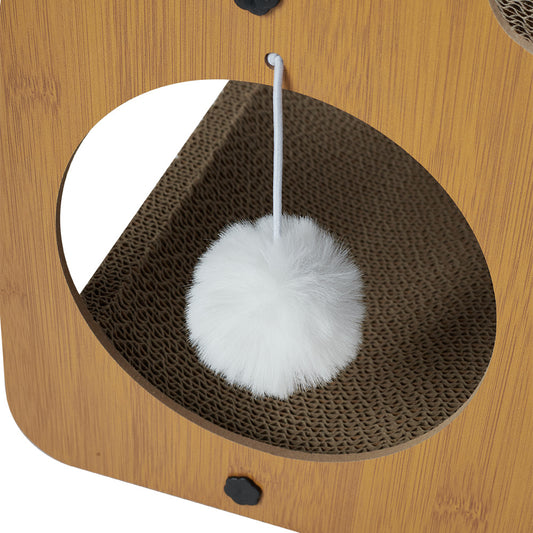 Cat Scratcher, Slope Design Cat Scratch Board with Ball Toy, Stable Structure Corrugated Paper Pine Wood Indoor Cat Scratching Cardboard for Multiple Cats, Furniture Protection