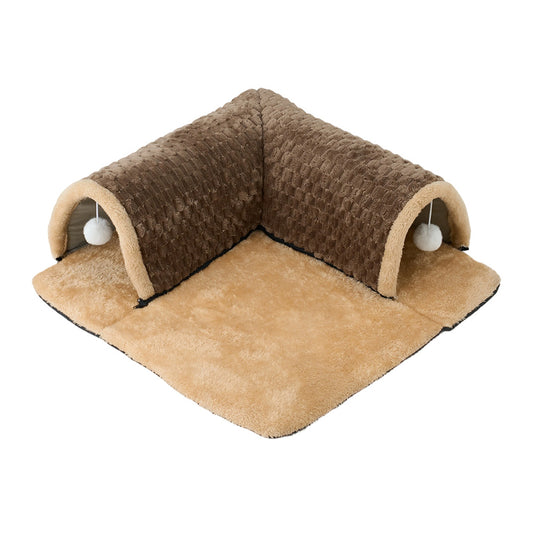 Square Cat Bed with Tube Cat Tunnel Bed Rectangle Cat Hideaway Tunnels with Hanging Balls for Indoor Outdoor Brown 60x60x15cm